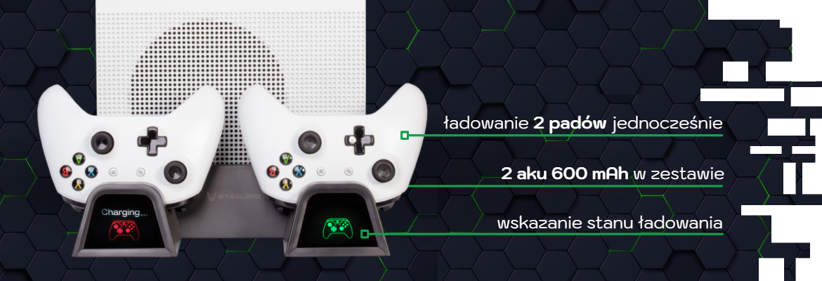 - Ładowarka chłodząca marki SteelDigi, która wyróżnia się chłodzeniem konsol Xbox One, organizerem na 12 płyt z grami i miejscem do ładowania 2 padów Xbox. W zestawie z akumulatorkami. Czego chcieć więcej?